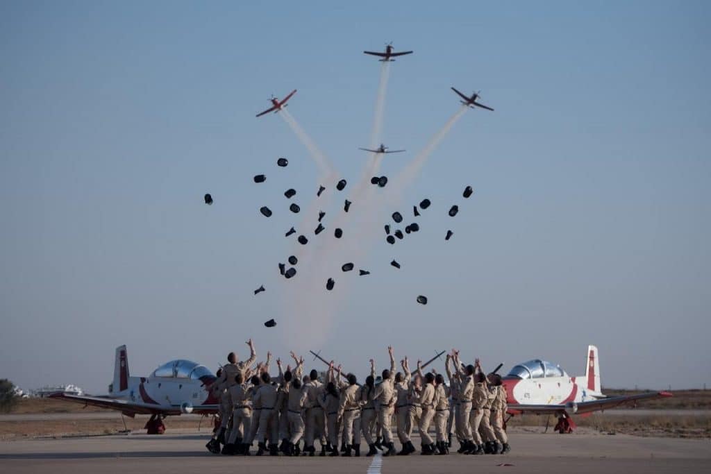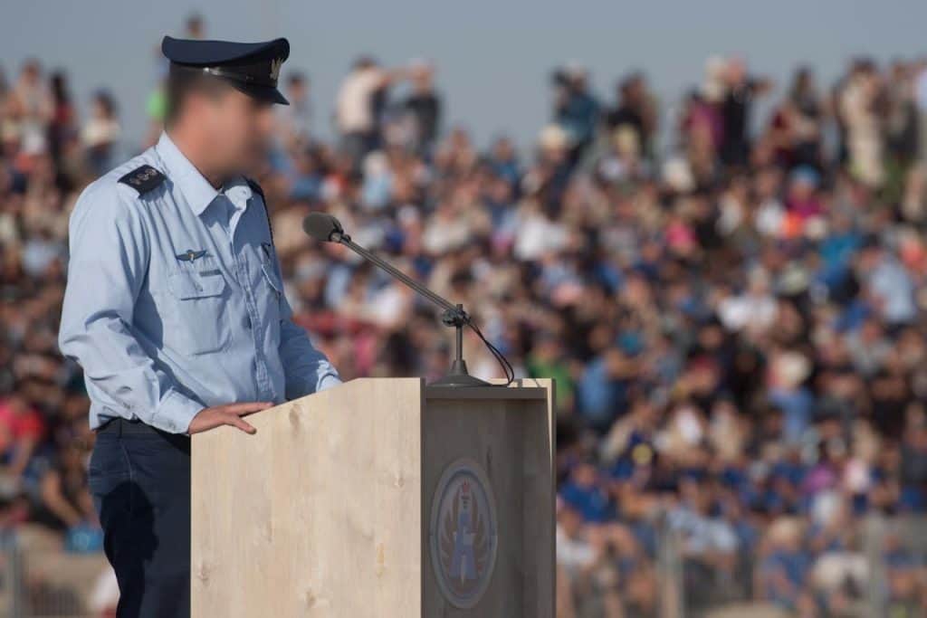 מפקד בית הספר לטיסה, אלוף-משנה מ' נשא דברים במהלך הטקס וציין כי "הדרך להיות לוחם אווירי מן המניין עוד ארוכה, זרועת פסגות ואתגרים. ליוויתי אתכם בשנתיים האחרונות ואני מכיר אתכם היטב. אני סמוך ובטוח שבכל אחד ואחת מכם טמונים הכישרון והיכולת לצלוח את המסע. הבאנו אתכם עד הלום. מכאן זה תלוי בכם, בכוח הרצון שלכם ובאופק מבטכם, בכמה שתחלמו, תתאמצו ותגשימו.