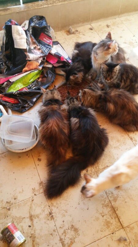 במקום נמצאו 21 חתולים, מתוכם 6 גורים, וכן שלושה כלבים מגזעים שונים. מצבם הבריאותי של בעלי חיים היה ירוד, עם קרחות בעורם, דלקות ובעיות עיניים. הבית נמצא בהזנחה קשה ביותר, הרצפה מכוסה בצואה ובלכלוך, הרשתות היו קרועות ובעלי החיים נאלצו לאכול מזון יבש שפוזר על גבי קרטון. עד מהרה, הוחלט על העברת בעלי החיים שנמצאו בדירה אל מתקן מוגן בכלבייה העירונית. במקביל, החשודה נחקרה ונפתחו נגדה הליכים משפטיים.