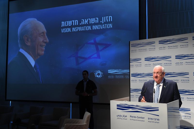 "קשה להאמין שחלפה כבר שנה מאז נאלצנו להיפרד משמעון פרס. האיש שגרם לנו להאמין שלא הזמן, לא החזון, ולא העשייה ניתנים לעצירה," פתח הנשיא את דבריו והמשיך: "זמן קצר לפני לכתו התכנסנו כאן כדי לחנוך את המרכז על שמו, מרכז פרס לשלום ולחדשנות. שוחחנו על היתרונות האדירים המצויים במדינת ישראל, היתרונות שהפכו אותנו למעבדת חדשנות יוצאת דופן שמייצאת לעולם ידע ומומחיות ולא מפסיקה להתחדש בעצמה." הנשיא ציין את מזכר ההבנות לחיזוק שיתוף הפעולה בתחום הטכנולוגיה הפיננסית שנחתם בין ישראל ושוויץ במטרה לטפח סביבה מסייעת לחדשנות, את רכישת מובילאיי על ידי אינטל, את שיתוף הפעולה של מיזמי הייטק ישראלים בתחום התחבורה עם יצרנית הרכב 'סקודה' שבכך הצטרפה לחברות רכב בינלאומיות נוספות המקיימות שיתוף פעולה זהה עם ישראל, "אלה רק דוגמאות אחדות לדרך שבה ההון האנושי, המשאב החשוב ביותר של מדינת ישראל, מתגלה שוב ושוב ככוח טבע של ממש בעוצמתו וביכולותיו," אמר הנשיא.