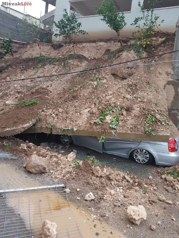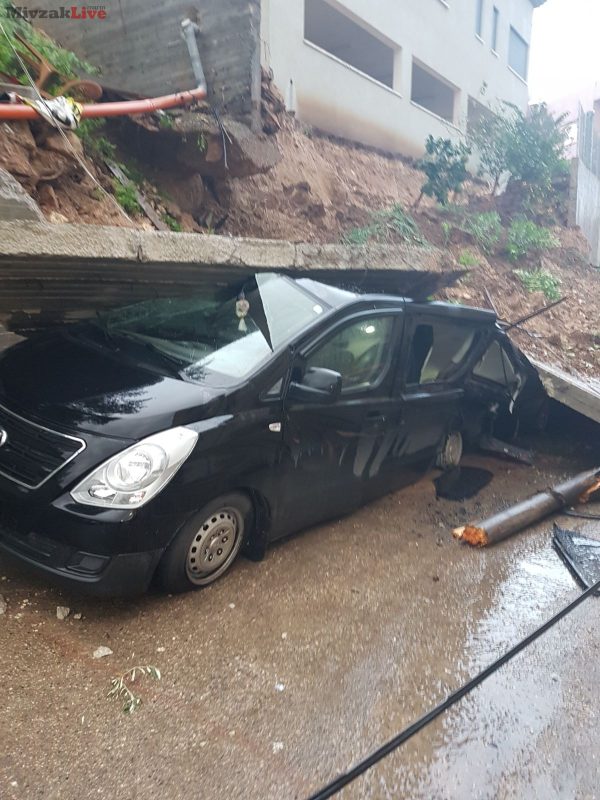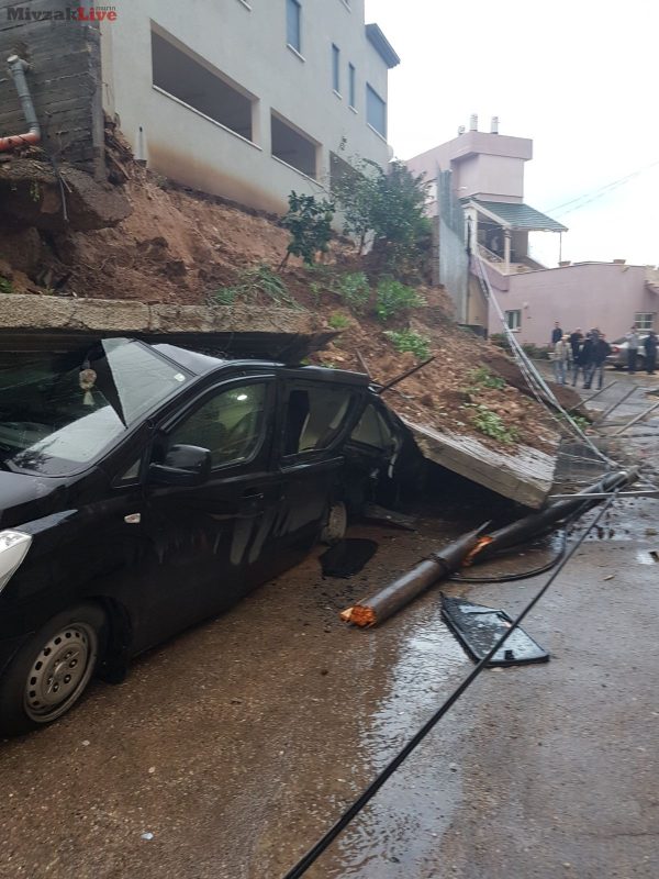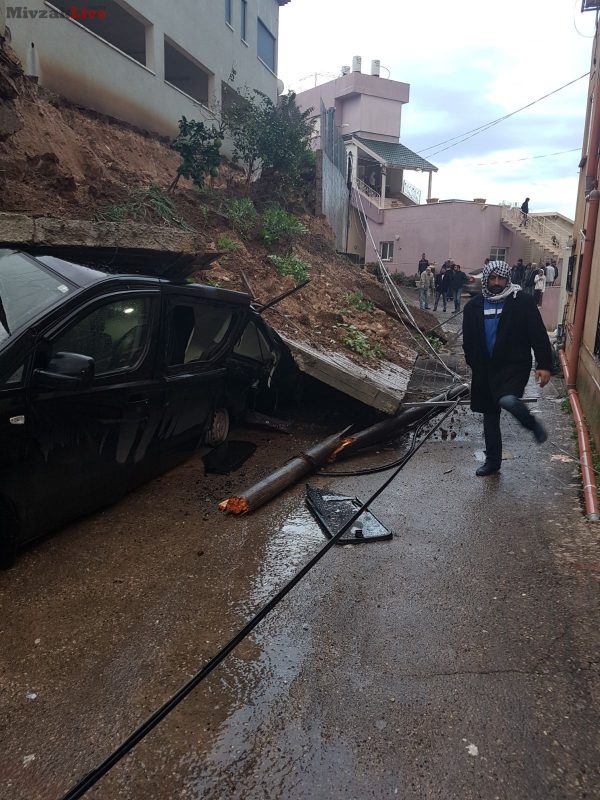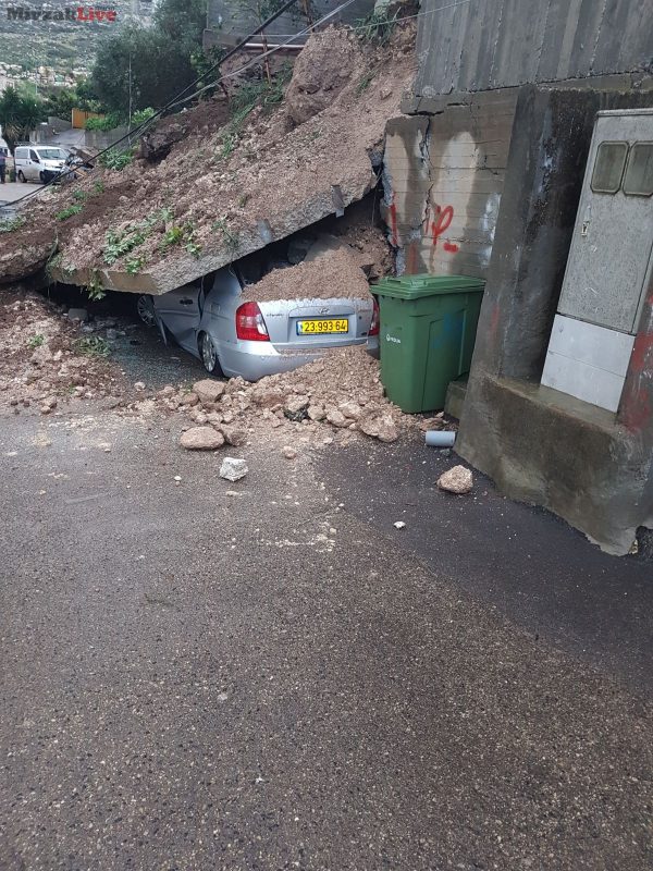 חומת בטון קרסה על כלי רכב חונים בשפרעם, אין נפגעים