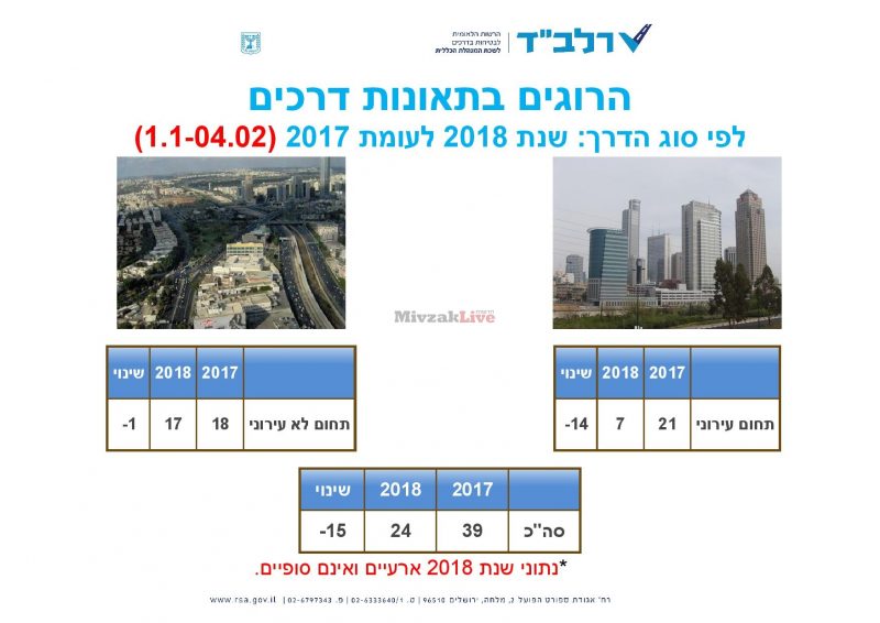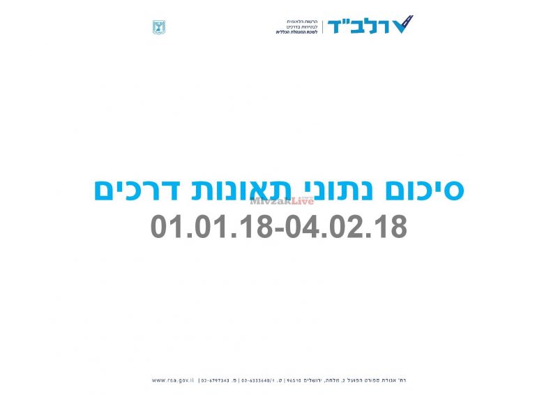 הרשות הלאומית לבטיחות בדרכים פרסמה היום (ראשון) את הסיכום השבועי של תאונות הדרכים הקטלניות בין התאריכים 3.02.2018-28.01.2018.