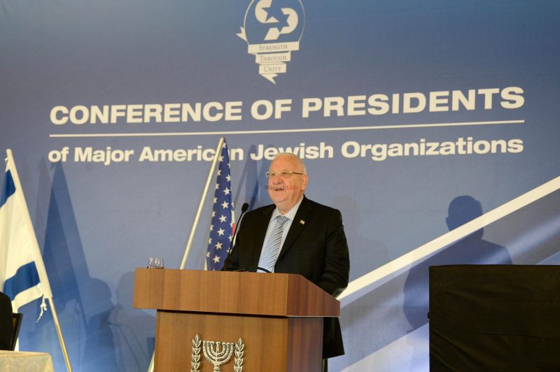 נשיא המדינה ראובן (רובי) ריבלין פתח הערב (ראשון) את הכנס השנתי של ועידת הנשיאים המתכנסת זו השנה ה-44 בישראל. במהלך המפגש נשאו דברי ברכה נשיא המדינה, יו"ר ועידת הנשיאים, סטפן מ. גרינברג ומנכ"ל הוועידה מלקולם הונליין. במפגש השתתפו כמאה נציגים מ-53 הארגונים היהודיים המרכזיים בארצות הברית והוא נערך בירושלים.