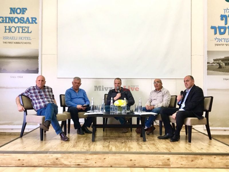 חברי הפאנל שבתרבות בנוף גנוסר – אלי לוי, ניסים קשת, עידן גריבאום, גיורא שחם ורוני מנור.