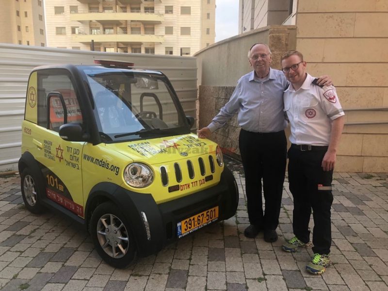 לפני כחודש התקבלה במוקד החירום 101 של מד"א קריאה על גבר בן 81, ברוך שטרנטל, שאיבד את הכרתו בביתו שבגבעת שמואל. חובש רפואת חירום במד"א, יששכר וייס שהוזנק למקום ע"י מוקד הכוננים של מד"א, הגיע בתוך כ- 2 דקות לביתו של ברוך, וזאת בזכות רכב הבימבולנס החשמלי של מד"א שעליו הוא נוהג. יששכר אבחן מהר כי ברוך סובל מהתקף לב חריף, ומיד החל להעניק לו טיפול מציל חיים באמצעות הציוד הרפואי הקיים ברכב הבימבולנס של מד"א. כעבור דקות בודדות הגיע למקום גם צוות ניידת טיפול נמרץ של מד"א שהמשיך את הטיפול הרפואי המתקדם ופינה את ברוך לבית החולים, שם הרופאים השלימו את המשימה וברוך יצא מכלל סכנה. לאחר חזרתו הביתה ברוך ניסה בכל כוחו לאתר את חובש מד"א שטיפל בו והציל את חייו – ומאמציו נשאו פרי, השבוע קיבל יששכר טלפון, וכשענה שמע מהצד השני "שלום, קוראים לי ברוך, רציתי להגיד לך תודה. בזכותך השיחה הזו מתקיימת". השבוע הזמין ברוך את הבימבולנס של מד"א בשנית, והפעם בכדי להודות לחובש יששכר וייס על שהציל את חייו. עוד הוסיף ואמר כי "מהיום כשאני רואה אמבולנס של מד"א ברחוב יש לזה משמעות אחרת, אני יודע שהם בדרך להציל חיים, אני מבין כל דבר אחרת ויודע שכל שניה קובעת".