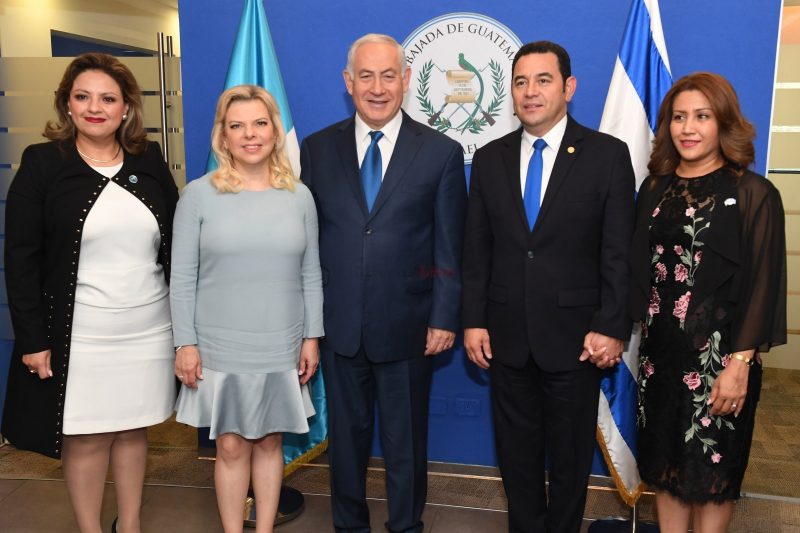 ראש הממשלה בנימין נתניהו ורעייתו השתתפו היום (רביעי) בטקס פתיחת שגרירות גואטמלה בירושלים. ראש הממשלה אמר בטקס,"זאת התחלה של משהו יוצא מן הכלל, למעשה התחלה מחדש של משהו יוצא מן הכלל, וזה היחסים בין גואטמלה וישראל. אני מבקש, בשמי ובשם רעייתי, לברך אתכם, הנשיא ג'ימי מוראלס ורעייתו, בברכה מיוחדת לרגל בואכם לירושלים וברכה מיוחדת לכל הפמליה שלך, נציגים מכובדים מגואטמלה, שרת החוץ סנדרה חובל, השרים שנמצאים כאן וחברי הקונגרס, האורחים שהגיעו לכאן מרחבי העולם. שרי ממשלה ישראלים, סגני שרים, חברי כנסת, שגרירים, השגריר פרידמן והגברת פרידמן מארה"ב."