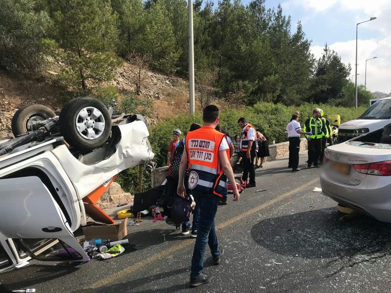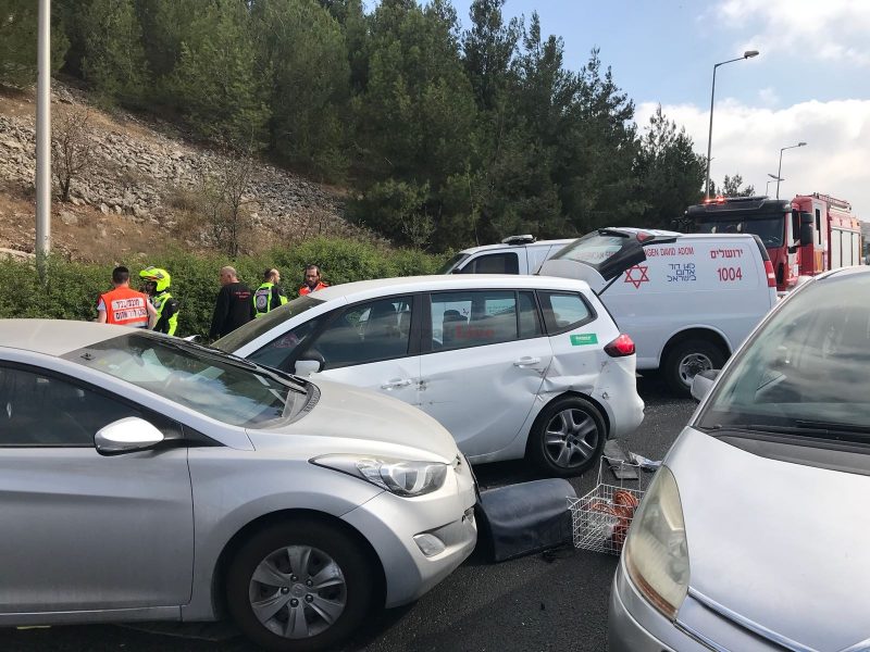 ירושלים: 8 פצועים בתאונת דרכים בכביש בגין לכיוון צפון
