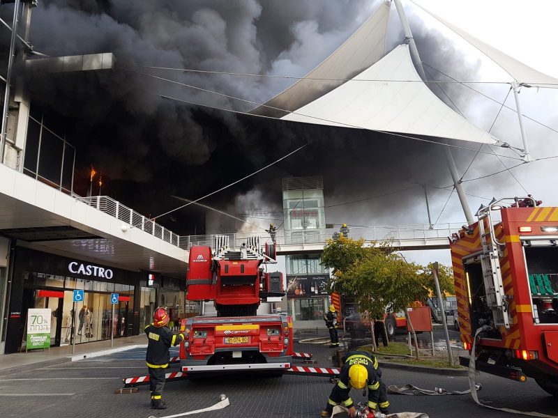צפו: עשרות צוותי כיבוי פועלים בשריפת ענק במתחם קניות בחדרה