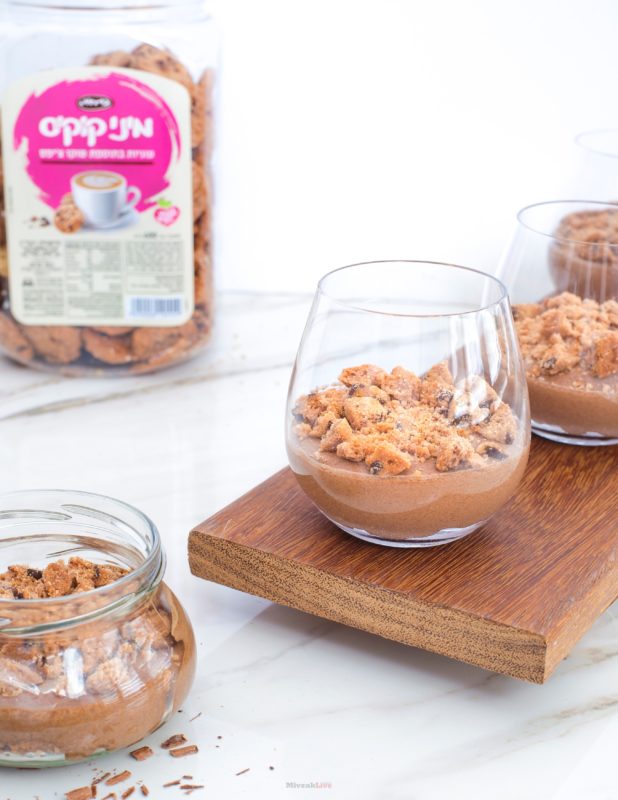 מתכון מוס שוקולד טבעוני ופירורי מיני קוקיס בכוסות:
