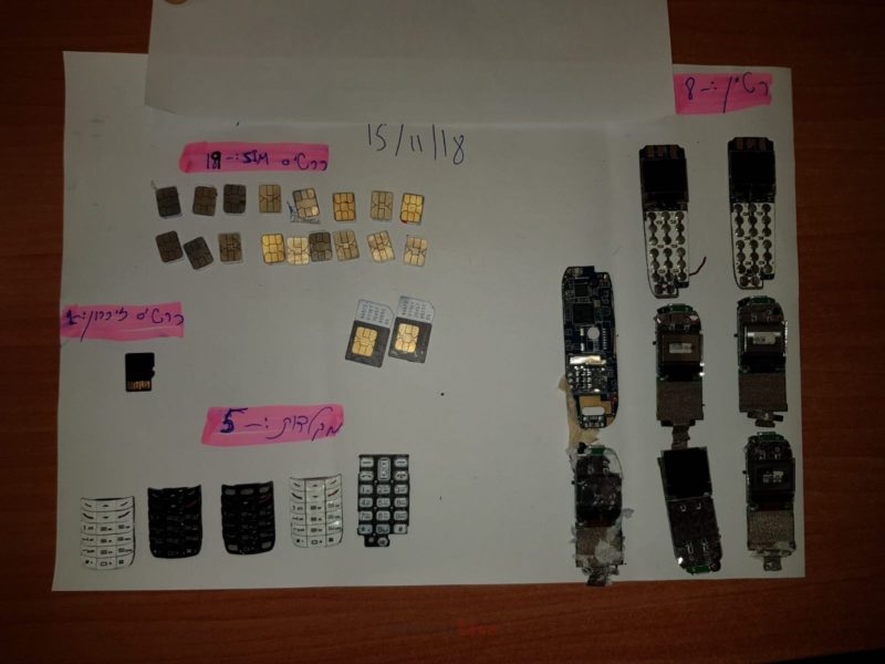 בבדיקה כאמור נמצאו 8 טלפונים, 5 מקלדות לטלפונים, 19 כרטיסי סים וכרטיס זיכרון.