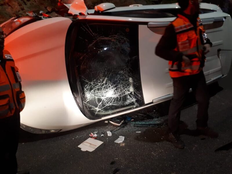 פראמדיק וחובשים של איחוד הצלה שהגיעו לזירת התאונה מצאו במקום רכב הפוך. הם העניקו טיפול רפואי לנהג שנפצע קל הוא פונה לאחר מכן להמשך טיפול בבית החולים. נסיבות התאונה נבדקות.