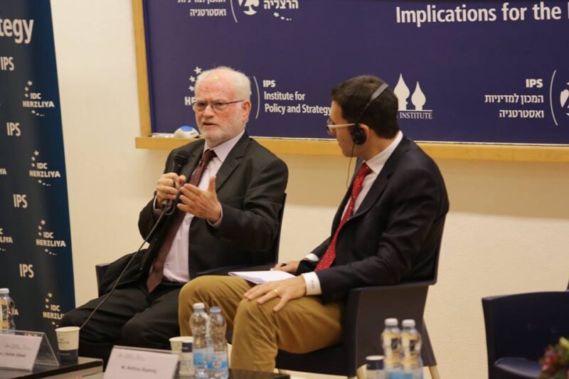 בערב העיון השתתפו אלוף (מיל') עמוס גלעד, ראש המכון למדיניות ואסטרטגיה (IPS) בבינתחומי; מת'יו רוז'נסקי, ראש מכון קינן במרכז וודרו ווילסון, ארה"ב; השגריר ד"ר דורי גולד, נשיא המרכז הירושלמי לענייני ציבור ומדינה, לשעבר מנכ"ל משרד החוץ ושגריר ישראל באו"ם; ח"כ קסניה סבטלובה, חברת וועדת חוץ וביטחון, הכנסת; השגריר דניאל שפירו, לשעבר שגריר ארה"ב בישראל; השגריר פרופ' איתמר רבינוביץ', נשיא המכון ללימודי ישראל, וושינגטון ותל אביב, לשעבר שגריר ישראל בארה"ב; ופרופ' מייקל קימג', האוניברסיטה הקתולית באמריקה.