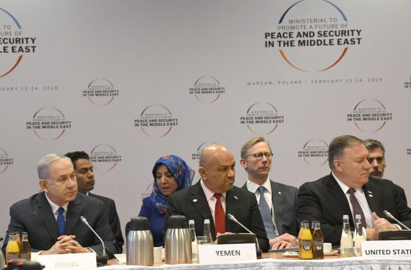 נתניהו הוסיף כי "יש קשר עמוק של קירבה והזדהות בין העם האמריקאי לעם ישראל ולהפך. אנחנו יודעים שאין לנו ידידה טובה בעולם מארצות הברית ולכם אין ידידה ושותפה טובה מישראל. אני יודע שאתה יודע את זה וגם שהנשיא טראמפ יודע את זה ואנחנו מעריכים את עמדתו האיתנה ואת החלטתו להעביר את השגרירות האמריקאית לירושלים. התמיכה של ממשלתך בישראל, באומות המאוחדות, יוצאת מן הכלל. הוועידה הזו, שאתה ארגנת, עם 60 שרי חוץ, שרי חוץ ערבים וראש ממשלה ישראלי שבפעם הראשונה עומדים יחד נגד איראן בבהירות ואחדות רבה כל כך – זה משהו שאנחנו מעריכים מאוד.