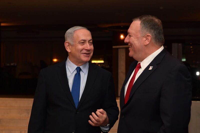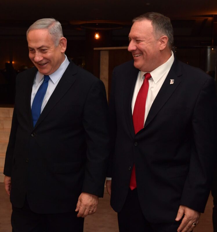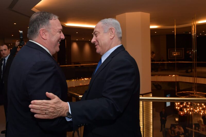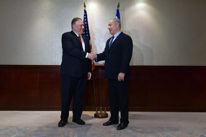 ראש הממשלה בנימין נתניהו אמר בפתח הפגישה: "אני שמח לראותך שוב, מזכיר המדינה פומפאו. הנושא הראשון שאעלה יהיה איראן, כך גם הנושא השני והשלישי, וכן עוד נושאים רבים. התברכנו שהנשיא טראמפ מוביל מדיניות עקבית של הפעלת לחץ נגד איראן. איראן מגבירה את תוקפנותה באזור, אפילו בעודנו מדברים. הם קוראים עלינו תיגר מאיראן, עיראק, סוריה, לבנון, עזה ותימן ואנו מתמודדים ישירות עם התוקפנות הזאת."