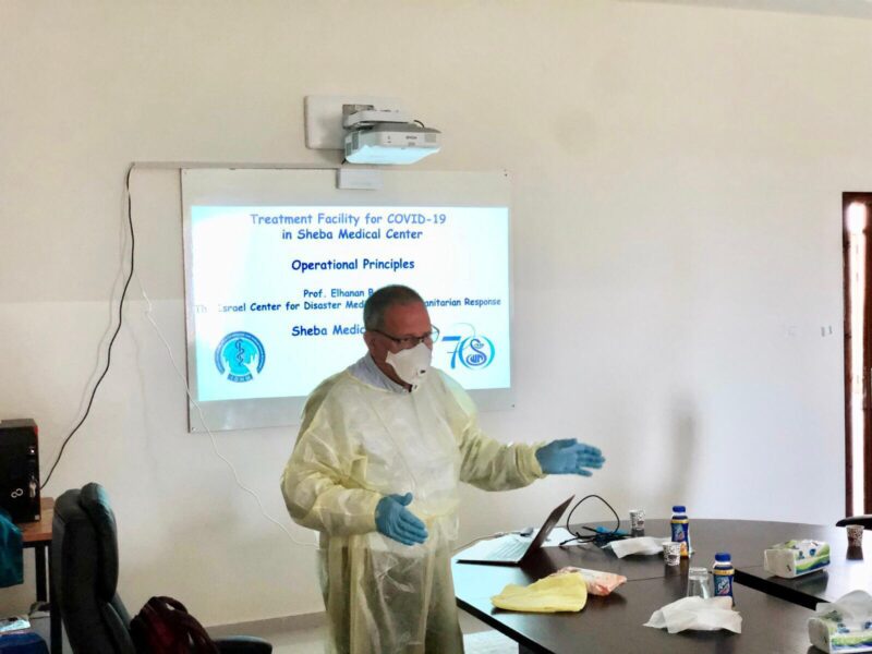 במסגרת הפעילות הנרחבת שמובילה היחידה לתיאום פעולות הממשלה בשטחים למיגור התפשטות נגיף הקורונה בשטחי יהודה ושומרון, התקיימה היום (ראשון) הדרכה מקצועית לצוותי רפואה פלסטינים, בהובלת מתאמת הבריאות במנהל האזרחי, דליה בסה יחד עם פרופ׳ אלחנן בר-און, מנהל המרכז הישראלי לרפואת אסונות וסיוע הומניטרי במרכז הרפואי שיבא.