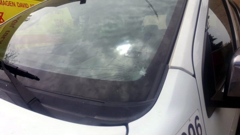 חובש רפואת חירום, מתנדב במד"א עטה את הערכה למניעת הידבקות סמוך לבניין בו מתגורר הנבדק, כשלפתע נפגע ממספר אבנים. בדרך נס, הוא רק נפגע קלות בכתפו ובנוסף נופצה השמשה הקדמית של רכב עיריית ירושלים, אשר נמצא בשירות מגן דוד אדום לביצוע דגימות קורונה. ממד"א נמסר כי תלונה תוגש במשטרה.
