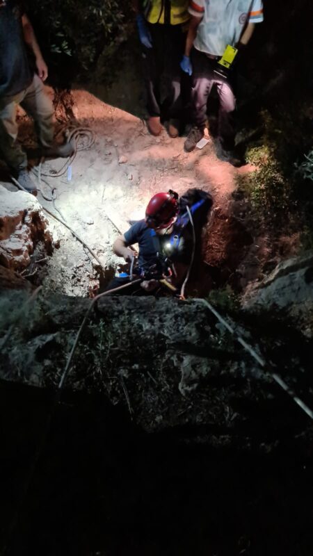 צוותי יל"מ (היחידה לחילוצים מיוחדים של שירותי הכיבוי) וכוחות הצלה רבים ובהם מד"א, בסיוע לוחמי יחידה 669 פועלים בשעה זו במקום בניסיון לחלץ בשלום את השלושה שלכודים בבור בעומק של כ-8-9 מטרים. במקביל הוזמן למקום מהנדס כדי לתת חוות לגבי הקרקע והיציבות שלה מחשש לקריסה.