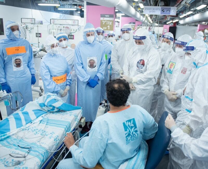 לטובת הפעלת המחלקות בבית החולים הוקצו כ-100 אנשי צוות רפואי צבאיים; הכוללים רופאים ורופאות, אחים ואחיות, חובשים, חובשות וסגל רפואי נוסף מתוך מערך הרפואה הצבאי הסדיר של חיל הרפואה. במהלך ביקורו ביקר הרמטכ"ל במחלקת הקורונה התת-קרקעית, שם פגש בחולים ושוחח עמם. בנוסף שוחח עם הצוות הרפואי של צה"ל ושל בית החולים והודה להם על עשייתם.