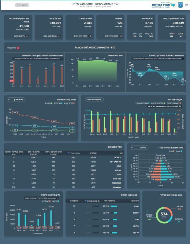 משרד הבריאות עדכן היום (רביעי) כי 663 חולים מאומתים אובחנו ביממה החולפת, ו- 320,849 מפרוץ המגיפה. ישנם 304 חולים המוגדרים במצב קשה, ו- 126 מונשמים. 2,683 בני אדם הלכו לעולמם מפרוץ המגיפה. כמו כן, נעשו אתמול 41,300 בדיקות. שיעור הבדיקות החיוביות עומד על % 1.6 .