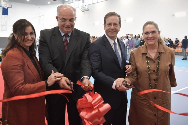עם תום סיורו חנך הנשיא אולם ספורט חדש שנבנה בעיר ואמר: "לפני ארבעה חודשים הושבעתי כנשיא מדינת ישראל. הבטחתי אז, בנאום ההשבעה שלי, שכדי למצוא את המאחד בינינו, כדי לסייע באיחוי הקרעים בתוכנו, אצא למסע בחברה הישראלית. הביקור שלי היום כאן, בטייבה, הוא תחנה חשובה במסע הזה, שאני נמצא רק בתחילתו."
