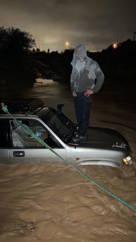 צוותי חילוץ עשו דרכם הלילה (שישי) לנחל קדרון, עקב דיווח מנהג על כך שרכבו שקע בנחל בעת שנסחף בשיטפון לאחר שניסה לחצות את הנחל. באירוע חולץ הלכוד בידי הצוותים בעזרת סולם טלסקופי אשר נפרס אל הרכב ובעזרתו הלכוד הצליח לחבור לכוחות.