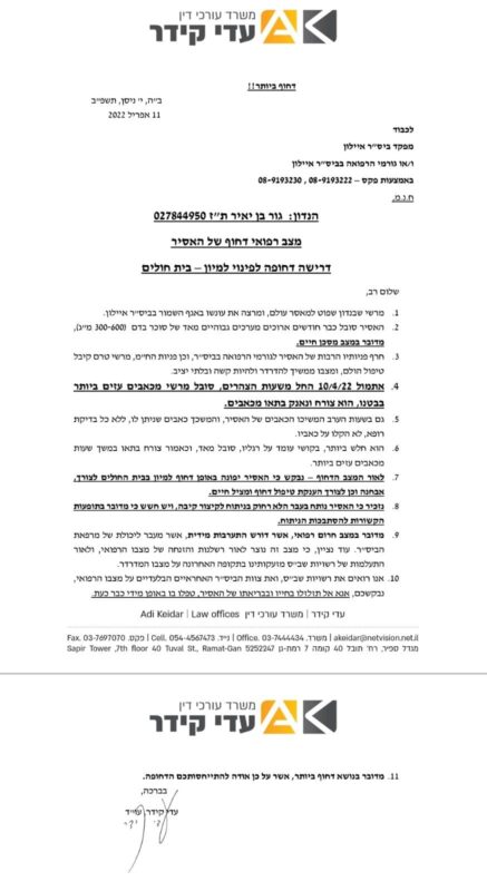 גור אף הגיש עתירה דחופה לבית משפט המחוזי מרכז על מצבו, ודרש לקבל טיפול רפואי, בית המשפט קבע דיון ליום רביעי הקרוב, שם היה צפוי גור לדרוש כי בית המשפט יחייב את שב"ס להעניק לו טיפול רפואי.