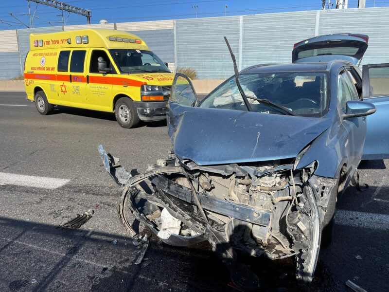שישה בני אדם נפצעו בתאונת שרשרת בין שישה כלי רכב בכביש איילון