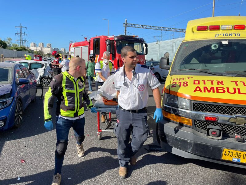 שמואל דהוקי חובש ביחידת האופנועים של איחוד הצלה מסר: "מדובר בתאונה עם מעורבות ששה כלי רכב – לדברי עוברי אורח שני כלי רכב אף התהפכו מספר פעמים. הענקנו בזירה סיוע ראשוני לשני גברים ולשתי נשים שנפצעו באורח בינוני, ולגבר ואשה שנפצעו קל. כוחות כיבוי פעלו בזירה עקב אופי התאונה".