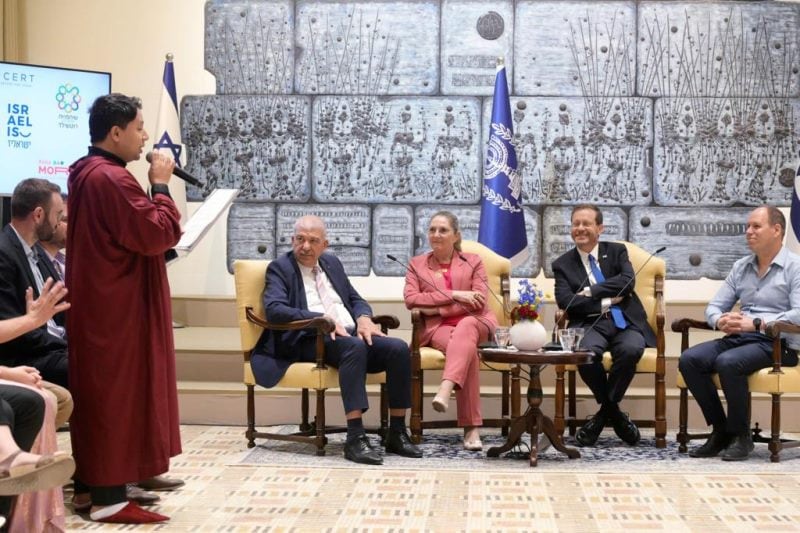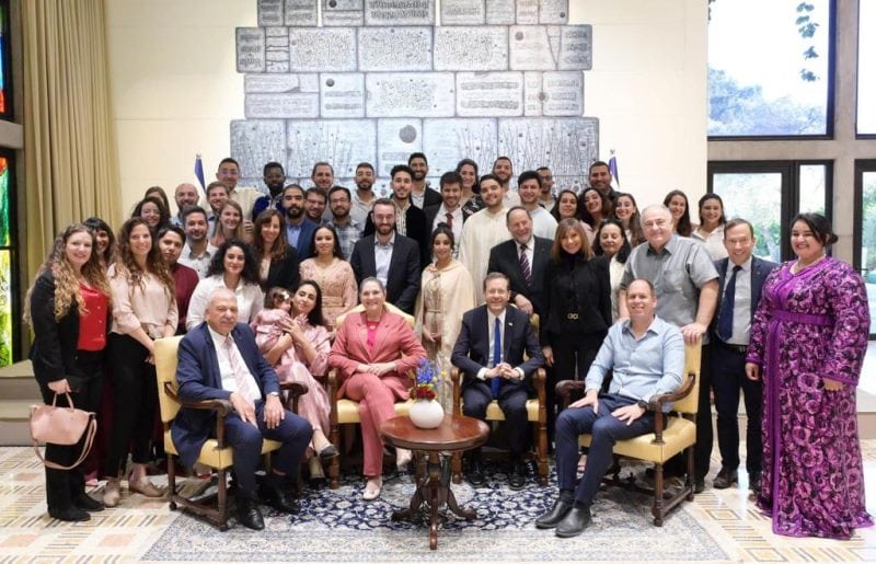 היום, (ראשון), נשיא המדינה יצחק הרצוג ורעייתו מיכל אירחו את חברי המשלחת ממרוקו ומישראל של עמותת 'ישראליז', במסגרת יוזמת ״מנהיגי המחר״ המחברת בין צעירים ישראלים לצעירים ממדינות הסכמי אברהם.