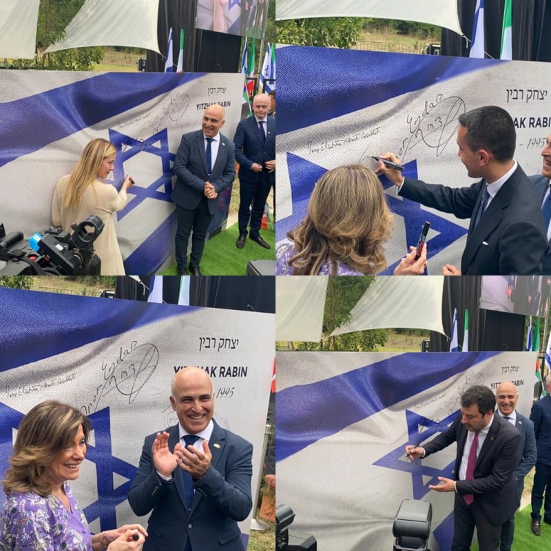 במסגרת האירוע, הוקראו דבריו של רה״מ מריו דראגי לאירוע וגם שה"ח האיטלקי לואיג'י די מאיו נשא דברים בשם ממשלת איטליה ושרי הממשלה יחד עם ראשי המפלגות, השגריר אידר, סגן השגריר אלון שמחיוף, ונשיאות הקהילה היהודית של איטליה ושל רומא, נעמי די זייני ורות דורגאלו, בהתאמה, הוסיפו את חתימתם על כרזת הענק עם תמונתו של רבין וכאות תמיכה באירוע.