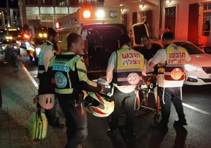 חובשי הצלה אפרים ויינברגר וחיים ברגמן סיפרו: "כשהגענו למקום עם אמבולנס מד"א, מצאנו אשה כבת 33 שוכבת במקום וסובלת מחבלות בגפיים לאחר שלדברי עוברי אורח נפלה מגובה של 5 מטרים. יחד עם רופא הצלה ד"ר רועי בבילה וחובשים של הצלה הענקנו לה טיפול רפואי ראשוני במקום, והיא פונתה במצב בינוני להמשך טיפול בחדר טראומה בבית החולים איכילוב בעיר."