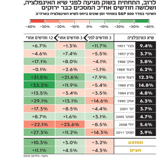 מנתונים אלו ניתן ללמוד כי מתוך 12 אירועי אינפלציה החל מ- 1951 , ב- 8 מקרים השוק הציג תשואות מרשימות ב- 12 החודשים לאחר שיא האינפלציה ומכאן ניתן להניח סטטיסטית לפחות שאם שיא האינפלציה מאחורינו כפי שאנו רואים בנתונים האחרונים דווקא עכשיו נפתחת הזדמנות גם בשווקי המניות לרבות מניות הטכנולוגיה הגדולות וגם בשוק האג"ח , המשקיעים המתמידים והסבלניים שיודעים להתנתק מהטווח הקצר ומהתנודות ואשר רואים את שוק ההון לטווח ארוך יכולים לקבל הזדמנות מעניינת להיכנס דווקא עכשיו לשוק או להגדיל את אחזקותיהם גם בשוק האג"ח וגם בשוק המניות לרבות מניות הטכנולוגיה הגדולות בוול סטריט שהוכיחו בדחות הרבעון האחרון את העצמה שלהם לבצע התאמות בשוק משתנה.