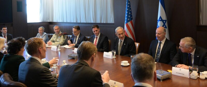 בפגישה השתתפו גם השר לעניינים אסטרטגיים רון דרמר, ראש המל"ל צחי הנגבי, ושגרירי שתי המדינות: שגריר ישראל בארה"ב מייק הרצוג ושגריר ארה"ב בישראל תומאס ניידס.