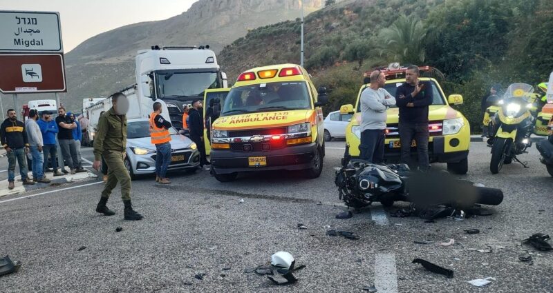 רוכב אופנוע כבן 20 נפצע לפני זמן קצר (חמישי) לאחר שנפגע מרכב בכביש 807 סמוך למגדל. חובשים ופראמדיקים של מד"א העניקו לו טיפול רפואי ופינו אותו במסוק מד"א לבית החולים רמב"ם בחיפה, במצב קשה מחוסר הכרה עם חבלת ראש.