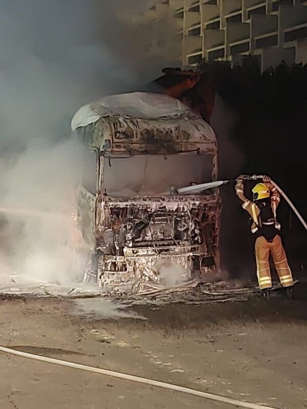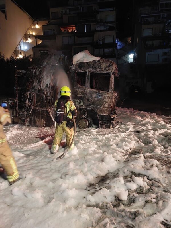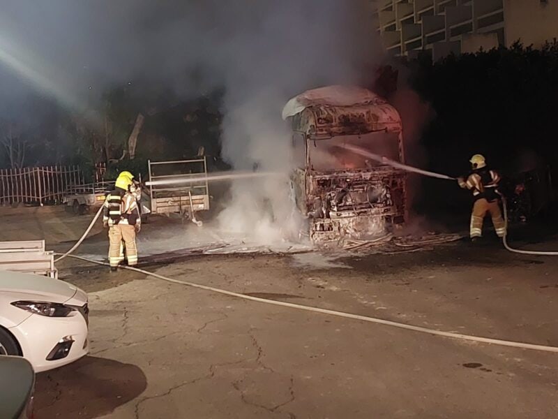 כוחות כיבוי פעלו לכיבוי משאית שעלתה באש בטבריה, רכבים נוספים נפגעו
