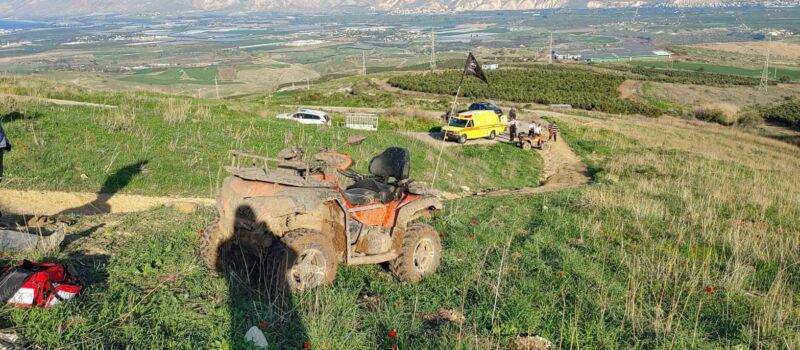 טרקטורון התהפך הערב (שישי) בשטח פתוח סמוך למנחמיה שבגליל התחתון. חובשים ופראמדיקים של מד"א העניקו טיפול רפואי לגבר בן 37 ופינו אותו למרכז הרפואי פוריה כשהוא במצב בינוני עם חבלה בחזה. בוחני אגף התנועה של המשטרה חוקרים את נסיבות התאונה.