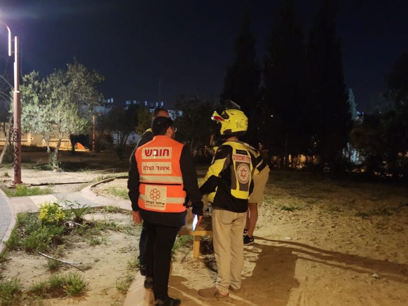 חובש בכיר במד"א טריפי אלהאוושלה ופארמדיק מד"א אביתר כהן סיפרו: "הפצוע ישב בגן הציבורי כשהוא בהכרה וסובל מפציעה חודרת בגופו. הענקנו לו טיפול רפואי מציל חיים שכלל חבישות וטיפול בנוזלים, הכנסנו אותו במהירות לניידת טיפול נמרץ ופינינו אותו לבית החולים כשמצבו יציב."