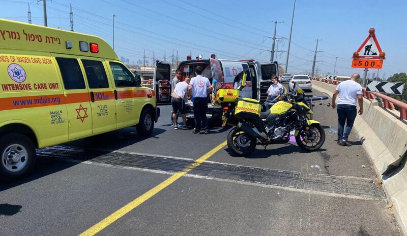 רוכב אופנוע נפגע מרכב בכביש 4 והובהל לבית החולים עם חבלה רב מערכתית