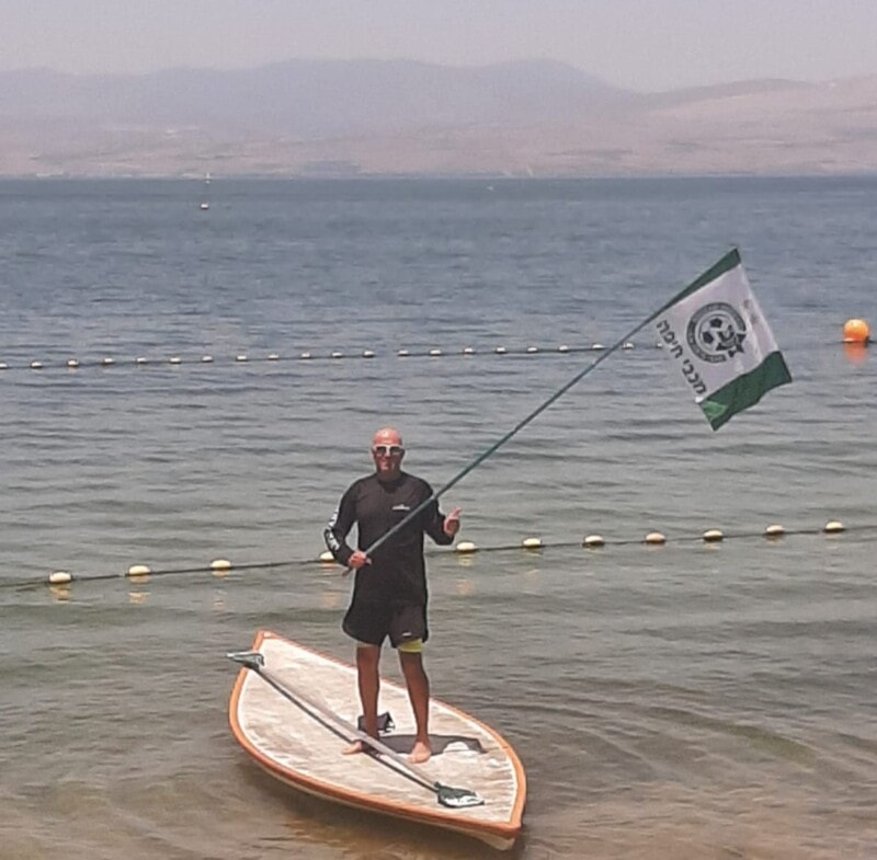 חגי פלג, מנהל תחנת ההצלה כפר הנופש עין גב: "מלבד הניצחון המדהים, מכבי חיפה קבעה גם היסטוריה! היא הקבוצה הישראלית היחידה שזכתה באליפות ובאותו שנה השתתפה בשלב הבתים בליגת האלופות האירופית. אנחנו מעניקים להם כבוד גם בחוף הכינרת".