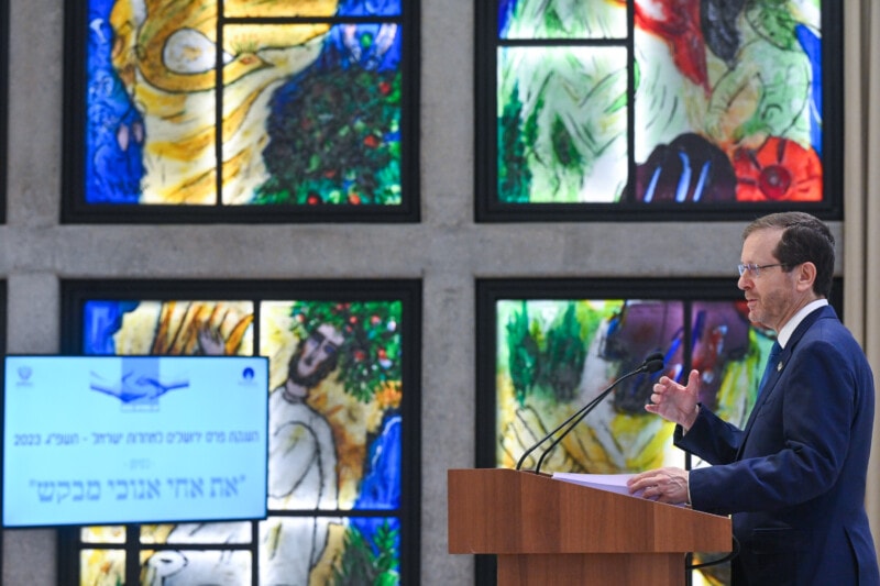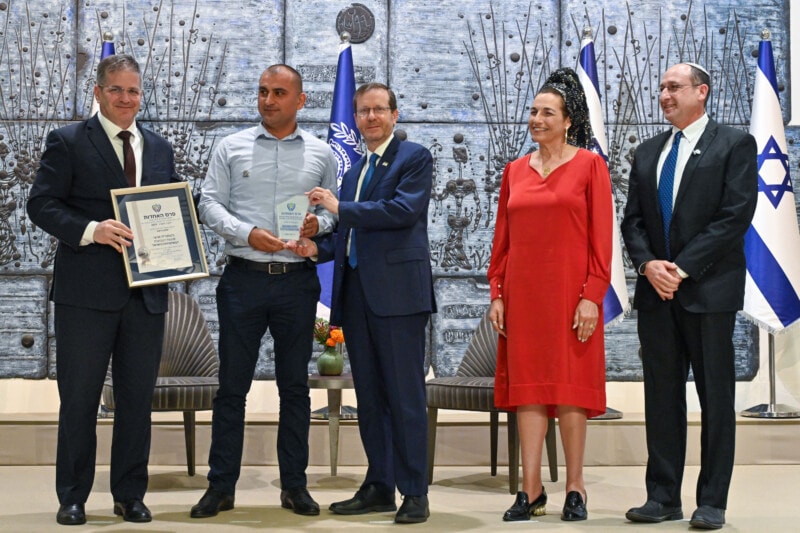 נשיא המדינה, יצחק הרצוג, אירח היום (שלישי) את טקס הענקת פרס ירושלים לאחדות ישראל. בפעם התשיעית בבית הנשיא, הטקס התקיים השנה בסימן "את אחיי אנוכי מבקש". באירוע נכחו שר החינוך יואב קיש, שר הנגב והגליל יצחק וסרלאוף, שרת ההתיישבות והמשימות הלאומיות אורית סטרוק, סגנית שר האוצר מיכל וולדיגר, ח"כ אברהם בצלאל, ח"כ חילי טרופר, משפחת שעאר, משפחת פרנקל, משפחת יפרח, חברי ועדת הפרס והזוכים.