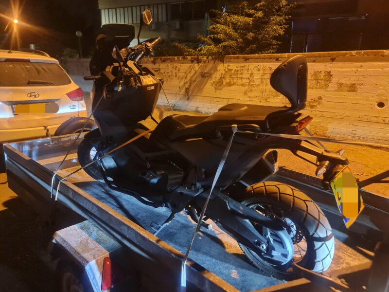היום (רביעי) בשעות בוקר מוקדמות הבחינו שוטר ופקח מצוות השיטור העירוני בפרדס חנה באופנוע הקשור לעגלה ונגרר על ידי רכב. חשדם של השוטרים עלה עקב השעה המוקדמת והמיקום הבלתי סביר של האופנוע הנגרר.