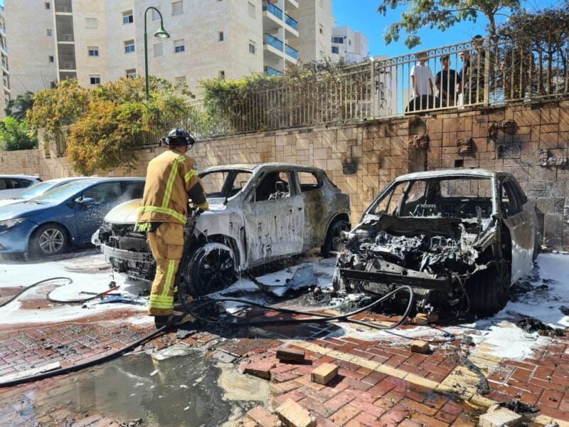 פגיעה ישירה סמוך לבניין באשקלון, מספר כלי רכב עלו באש