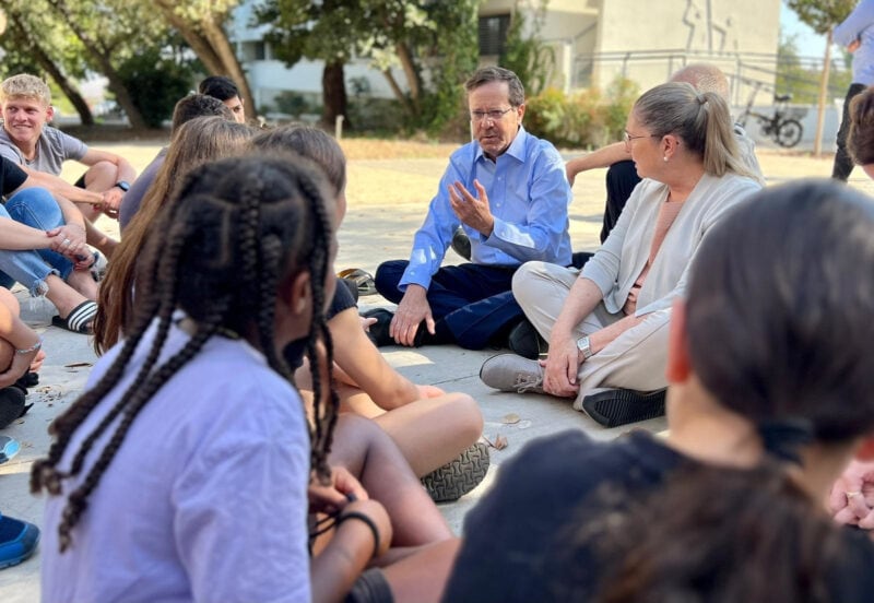לאחר מכן נפגשו הנשיא ורעייתו עם ילדי הקיבוץ, הנשיא פנה אל הילדים, עודד אותם לשתף את הרגשות והמחשבות איתן הם מתמודדים בעת הכואבת הזו ואמר להם: ״יש כוח עצום בלהיות קבוצה, תסתכלו על ציפורים עפות יחד, אתם בדיוק כמו הציפורים. באנו לחזק ולשמוע אתכם.״ הילדים שיתפו את הנשיא בסיפורים האישיים שלהם מיום שבת הנורא, ולסיום נשיא המדינה ורעייתו הזמינו אותם לבית הנשיא.