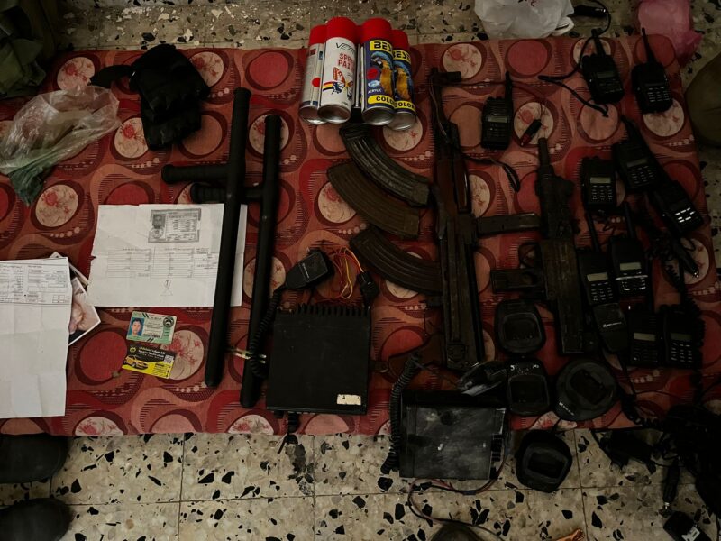 בפעילות אותרו, נשקים מסוג קלאצ׳ניקוב ותת מקלע, מחסניות, רימונים, מטענים, אמצעי מיגון, רחפנים חמושים וטילי RPG. חלק מאמצעי הלחימה הושמדו וחלקם הובאו ארצה לצרכי מחקר.