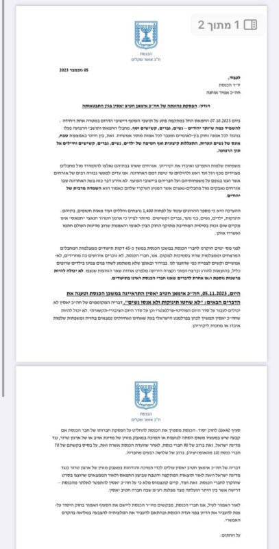 חברי הכנסת אושר שקלים וחנוך מיליביצקי (ליכוד) החלו להחתים חברי כנסת על מכתב הקורא להדחת חברת הכנסת אימן יאסין מרע"מ שטענה כי לא בוצעו מעשי טבח בעוטף עזה וכי אינה מאמינה לדיווחים ממעשי הזוועות בעוטף עזה.