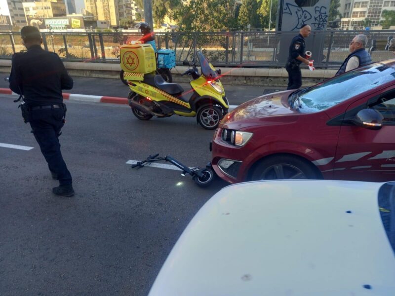 רוכב קורקינט חשמלי בן 50 נפצע בינוני מפגיעת רכב בתל אביב