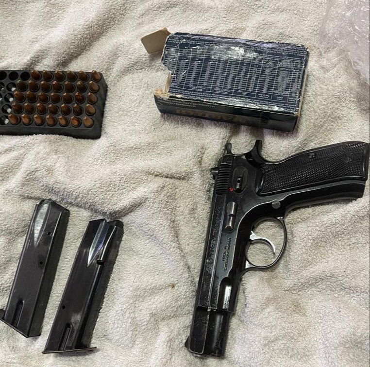 במהלך החיפוש, איתרו הכוחות בסיוע הרב של פטרה, שקית שהוסתרה בתוך ארון הבגדים שבחדר השינה ובתוכה אקדח, עשרות כדורי תחמושת מתאימים, מחסניות ופריטים נוספים. בנוסף, במהלך החיפוש אותר סכום כסף רב בסך מאות אלפי שקלים.
