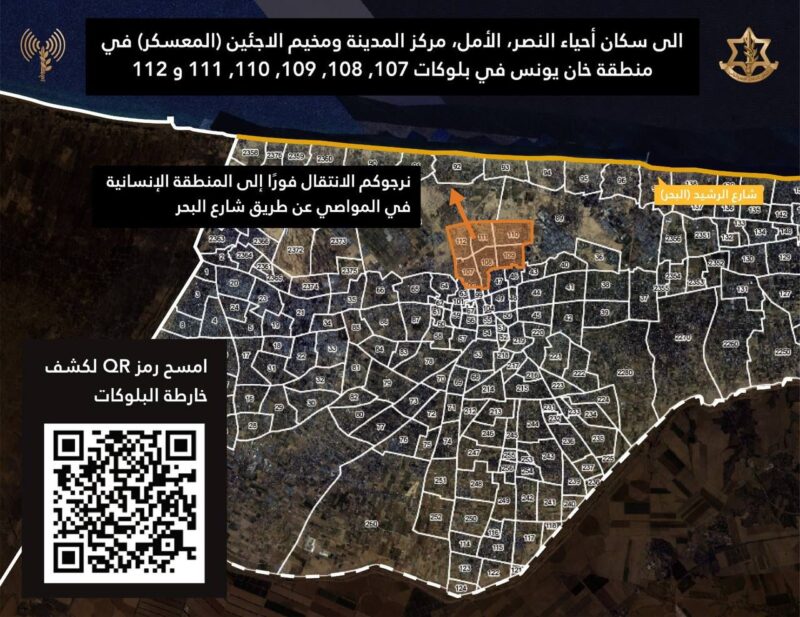 דובר צה״ל בערבית, סא"ל אביחי אדרעי, עדכן היום (שבת) כי צה"ל פתח בימים האחרונים מסדרון הומניטרי כדי לאפשר לתושבי חאן יונס לנוע מערבה מאזור הלחימה לאזור ההומניטרי באל-מוואסי.