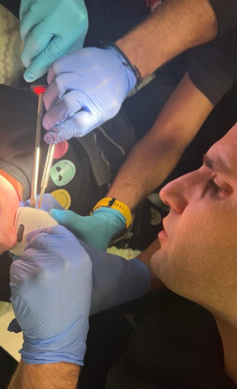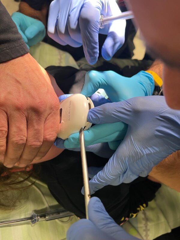 לדברי ד"ר רוזנבלום: "מדובר במכשיר שאין לו כפתור הפעלה או כיבוי או סוללות שניתן להוציא והוא פועל באופן אוטומטי ברגע שהוא מרגיש התנגדות. ביצענו העברה עדינה מאוד של הילדה לחדר המיועד לפעולות תחת טשטוש והרדמה והתחלנו להכין אותה להרדמה. במקביל הזמנו צוות של כיבוי אש והגיעו אלינו ארבעה לוחמי אש וביחד ניסינו להבין מה הגישה הטובה ביותר לנטרול ההפעלה. לשמחתנו הודות לזהירות המירבית שליוותה את כולנו באירוע תוך הימנעות מתזוזה של המכשיר,שחררנו אותו וגילינו שהילדה סובלת מחתך קטן יחסית. לאחר תפירה עדינה של החתך החלנו בפעולות להעיר את הילדה והאירוע הסתיים בטוב ולילדה שלום".