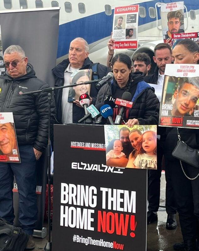 בדרך לדרוש צדק: משפחות החטופים יצאו הבוקר (רביעי) להאג על מנת להגיש תלונה נגד ראשי חמאס בבית הדין הפלילי הבינלאומי. עופרי ביבס, אחותו של ירדן ביבס, גיסתה של שירי ודודתם של הילדים כפיר ואריאל ביבס שנמצאים בשבי החמאס:אמרה: "היום נעשה היסטוריה ונגיע להאג, לבית הדין הפלילי הבינלאומי".