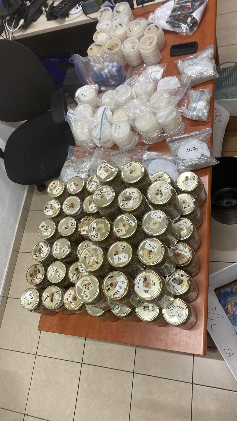 בלשי משטרת תל אביב דרום פשטו בסוף השבוע האחרון על דירה בעיר. המהלך החיפושים שביצעו הבלשים במקום, נתפסו 56 צנצנות לאחר הנבגה של פטריות הזייה מסוג פסילוסיבין וסוגים נוספים, כמו כן, נתפסו במקום חומרים נוספים החשודים כסמים מסוג md ומריחואנה. החשוד, תושב העיר בן 37 נעצר והובא לחקירה בתחנה.